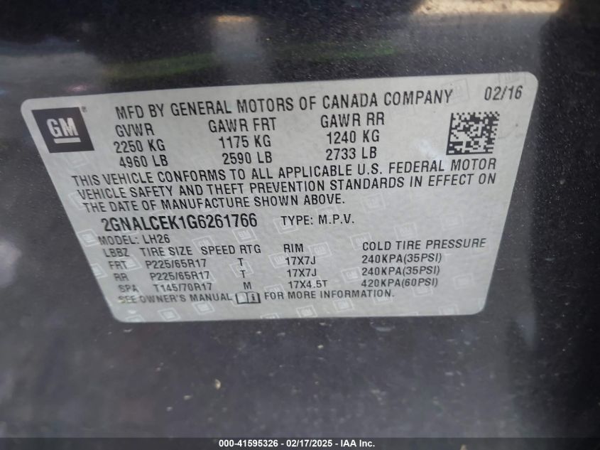 2016 CHEVROLET EQUINOX 2016 року Бензин, 2.4, Передний привод, vin - 2GNALCEK1G6****** из США