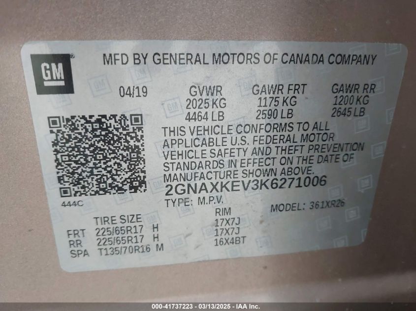 Цвет БежевыйЦилиндры 4Привод Передний приводVIN 2GNAXKEV3K6******Состояние НеизвестноПовреждения Передняя или задняя AutoRIA