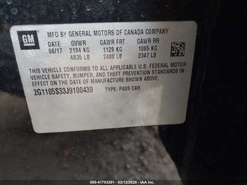Цвет ЧерныйЦилиндры 6Привод Передний приводVIN 2G1105S33J9******Состояние НеизвестноПовреждения Передняя или задняя AutoRIA