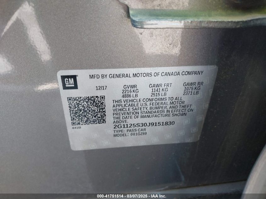 2018 CHEVROLET IMPALA 2018 року Бензин, 3.6, Передний привод, vin - 2G1125S30J9****** из США