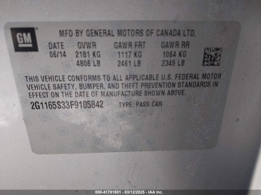 Цвет СеребряныйЦилиндры 6Привод Передний приводVIN 2G1165S33F9******Состояние НеизвестноПовреждения Передняя или задняя AutoRIA