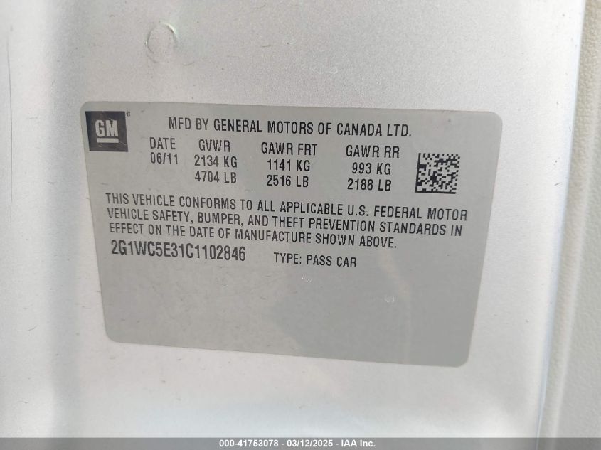 Цвет СеребряныйЦилиндры 6Привод Передний приводVIN 2G1WC5E31C1******Состояние НеизвестноПовреждения Задняя