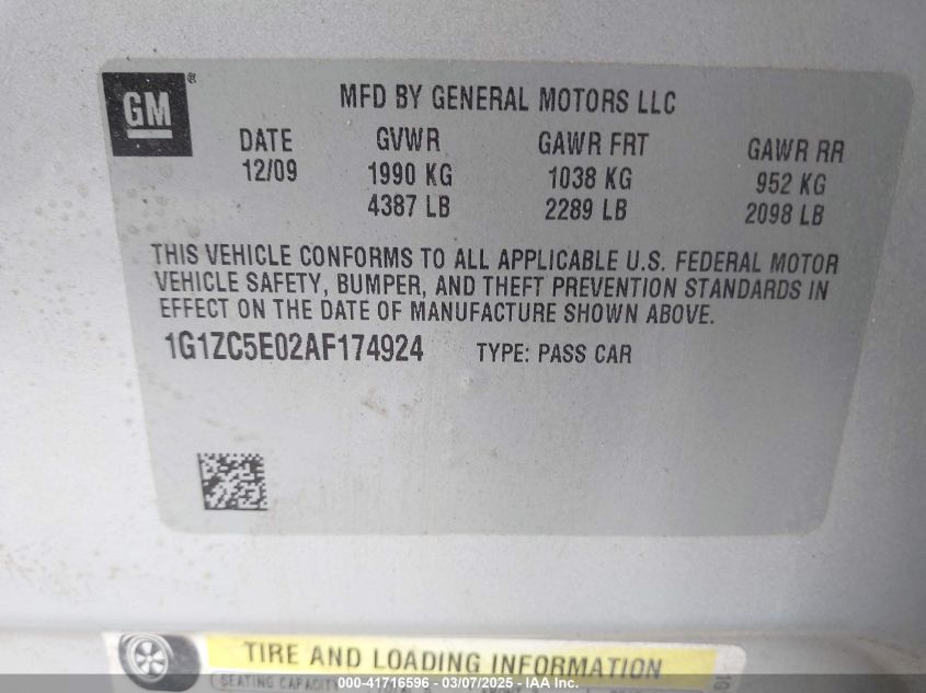2010 CHEVROLET MALIBU 2010 року Бензин, 2.4, Передний привод, vin - 1G1ZC5E02AF****** из США