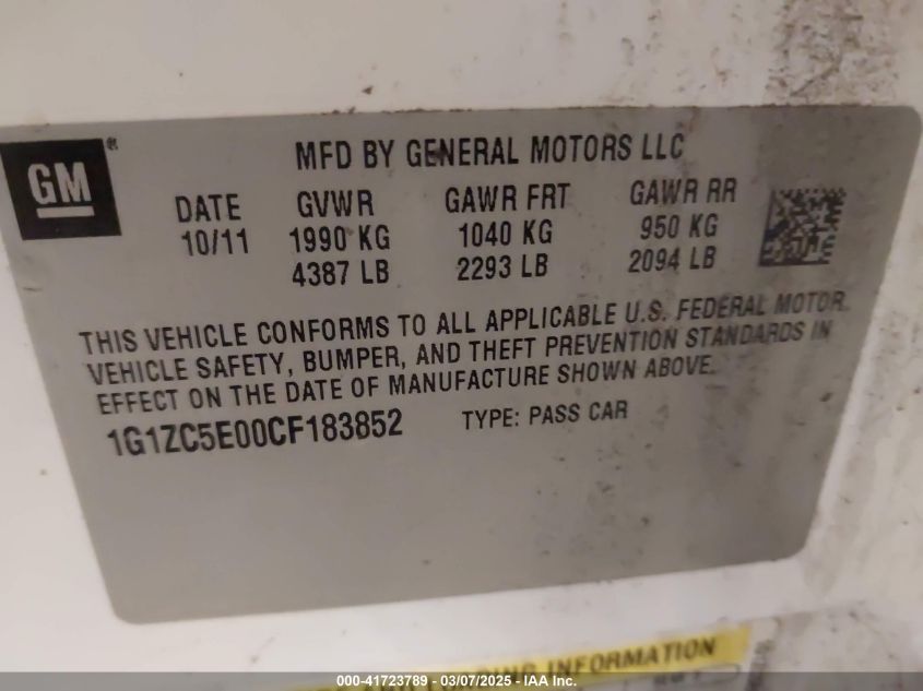 Цвет БелыйЦилиндры 4Привод Передний приводVIN 1G1ZC5E00CF******Состояние НеизвестноПовреждения По бокам AutoRIA