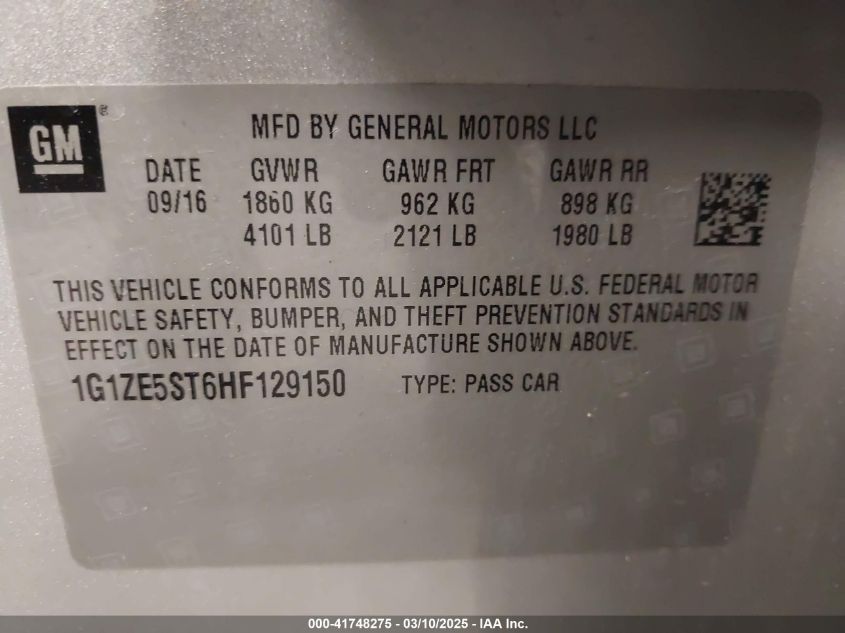 Цвет СеребряныйЦилиндры 4Привод Передний приводVIN 1G1ZE5ST6HF******Состояние НеизвестноПовреждения Передняя или задняя AutoRIA