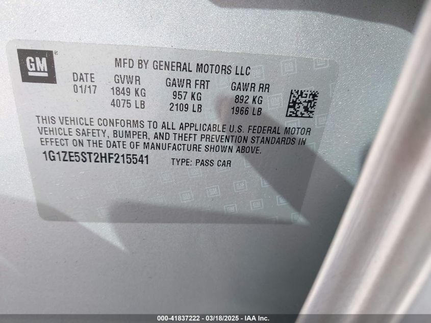 2017 CHEVROLET MALIBU 2017 року Бензин, 1.5, Передний привод, vin - 1G1ZE5ST2HF****** из США