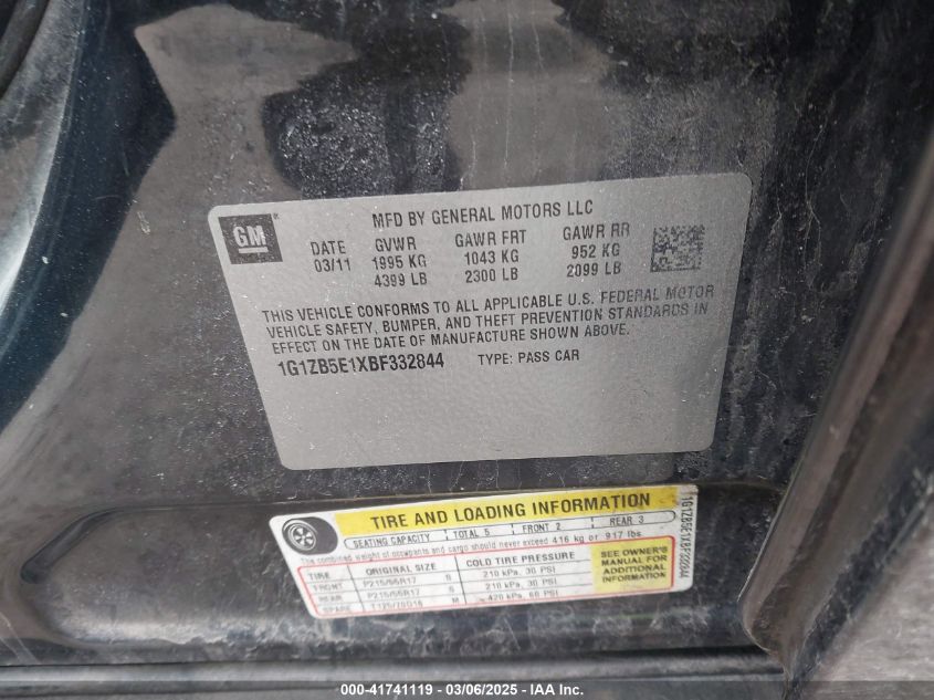 Цвет ЧерныйЦилиндры 4Привод Передний приводVIN 1G1ZB5E1XBF******Состояние НеизвестноПовреждения Передняя или задняяДата аукциона 2025-03-26