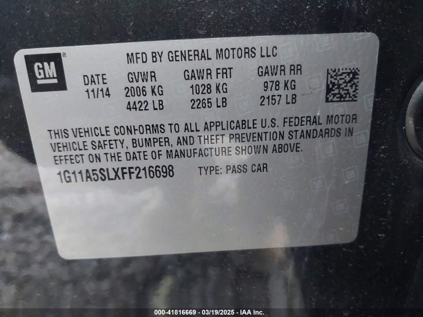 Цвет СерыйЦилиндры 4Привод Передний приводVIN 1G11A5SLXFF******Состояние НеизвестноПовреждения Правая сторона AutoRIA