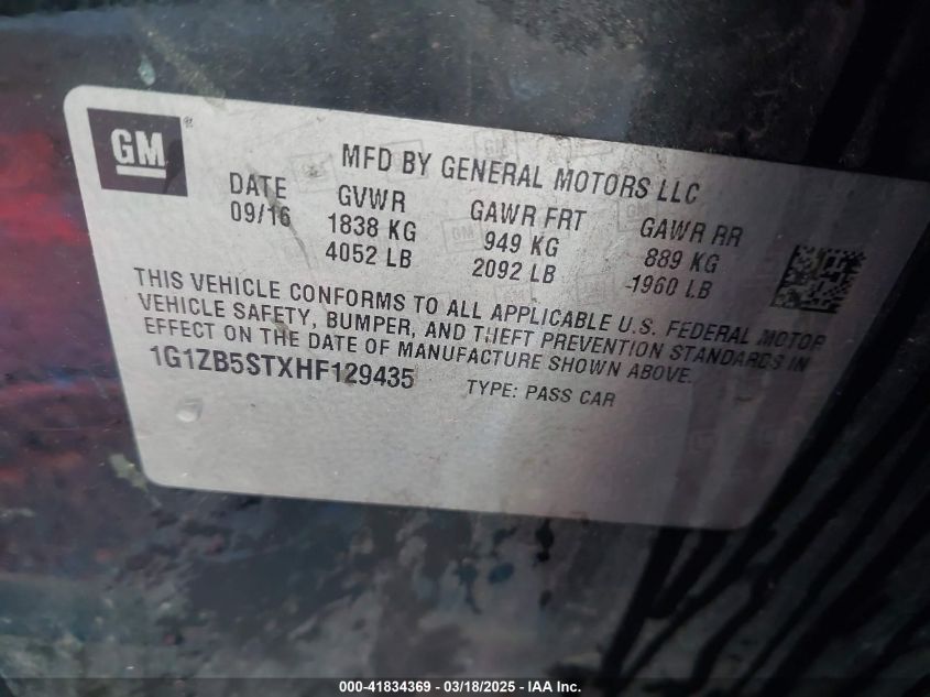 2017 CHEVROLET MALIBU 2017 року Бензин, 1.5, Передний привод, vin - 1G1ZB5STXHF****** из США