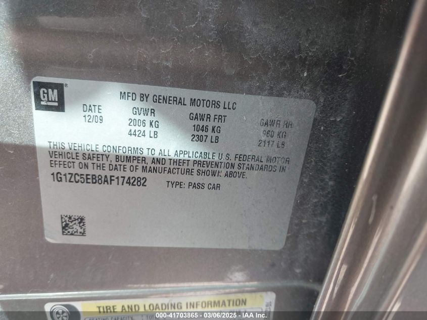 Цвет СерыйЦилиндры 4Привод Передний приводVIN 1G1ZC5EB8AF******Состояние НеизвестноПовреждения Передняя или задняя