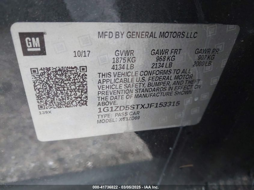 2018 CHEVROLET MALIBU 2018 року Бензин, 1.5, Передний привод, vin - 1G1ZD5STXJF****** из США