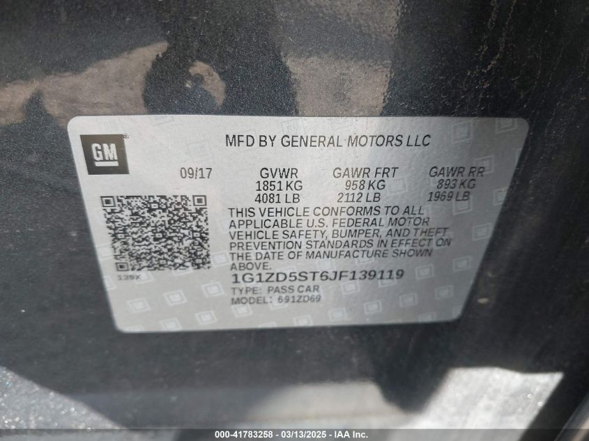 Цвет СерыйЦилиндры 4Привод Передний приводVIN 1G1ZD5ST6JF******Состояние НеизвестноПовреждения Передняя и задняя AutoRIA