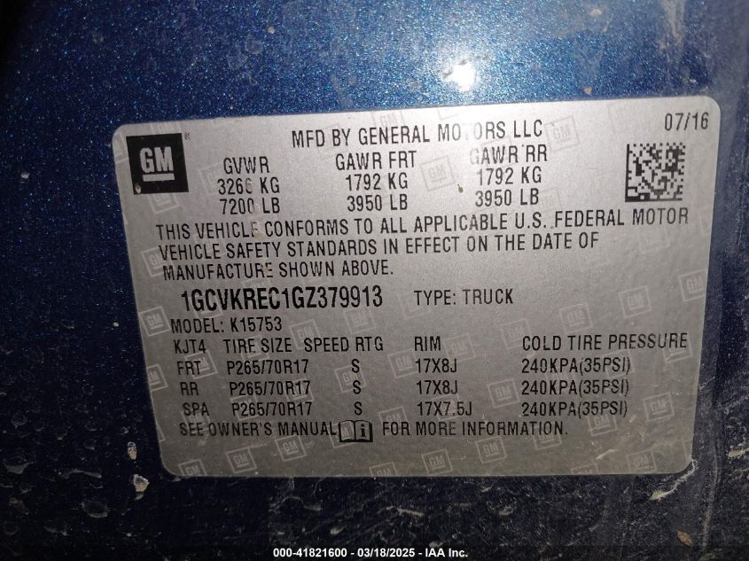 Цвет СинийЦилиндры 8Привод Полный приводVIN 1GCVKREC1GZ******Состояние НеизвестноПовреждения Задняя
