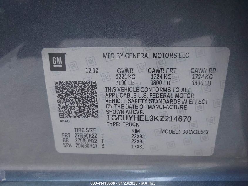Цвет СерыйЦилиндры 8Привод Полный приводVIN 1GCUYHEL3KZ******Состояние НеизвестноПовреждения Передняя или задняя