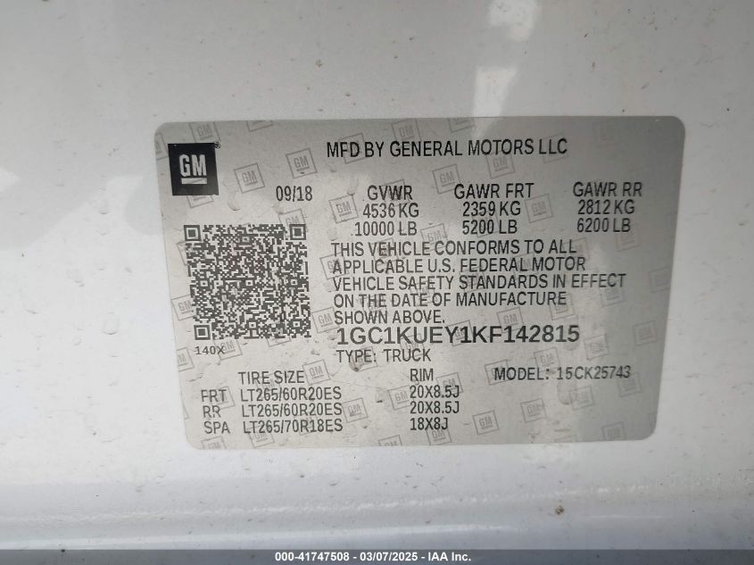 Цвет БелыйЦилиндры 8Привод Полный приводVIN 1GC1KUEY1KF******Состояние НеизвестноПовреждения Вандализм
