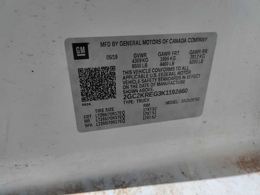 Цвет Цилиндры 8Привод Полный приводVIN 2GC2KREG3K1******Состояние НеизвестноПовреждения НезначительныеДата аукциона 2025-06-01