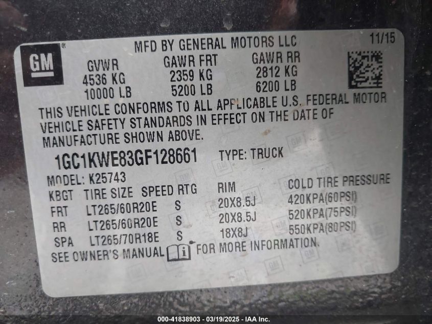 2016 CHEVROLET SILVERADO 2500 2016 року Дизель, 6.6, Полный привод, vin - 1GC1KWE83GF****** из США