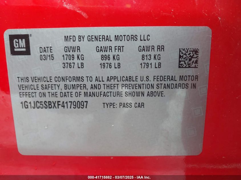 2015 CHEVROLET SONIC 2015 року Бензин, 1.4, Передний привод, vin - 1G1JC5SBXF4****** из США