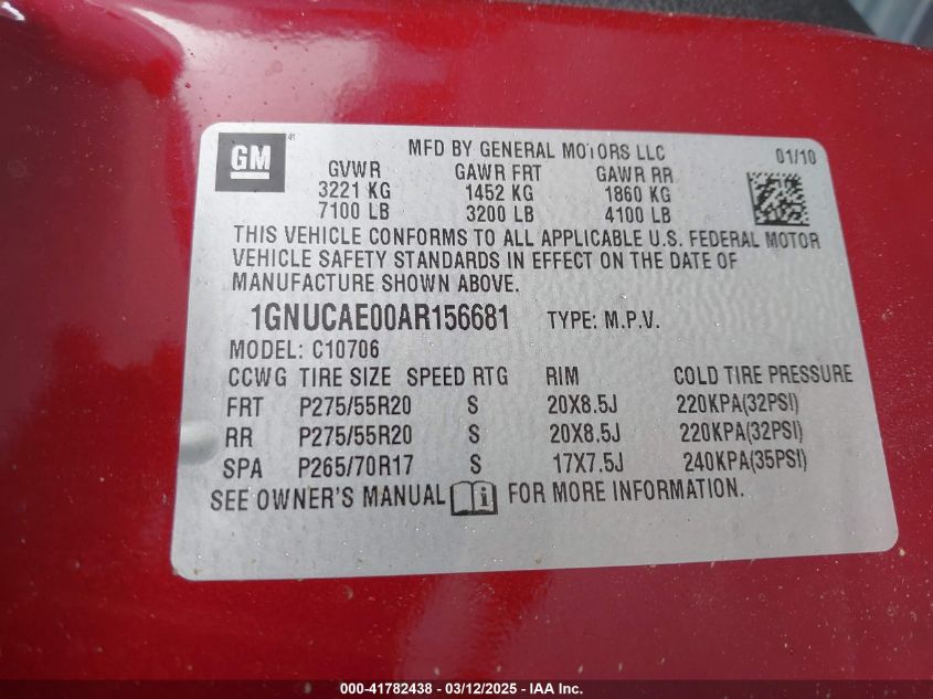 2010 CHEVROLET TAHOE 2010 року Бензин, 5.3, Неизвестно, vin - 1GNUCAE00AR****** из США