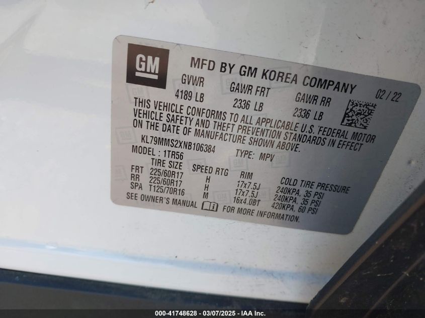 2022 CHEVROLET TRAILBLAZER 2022 року Бензин, 1.2, Передний привод, vin - KL79MMS2XNB****** из США