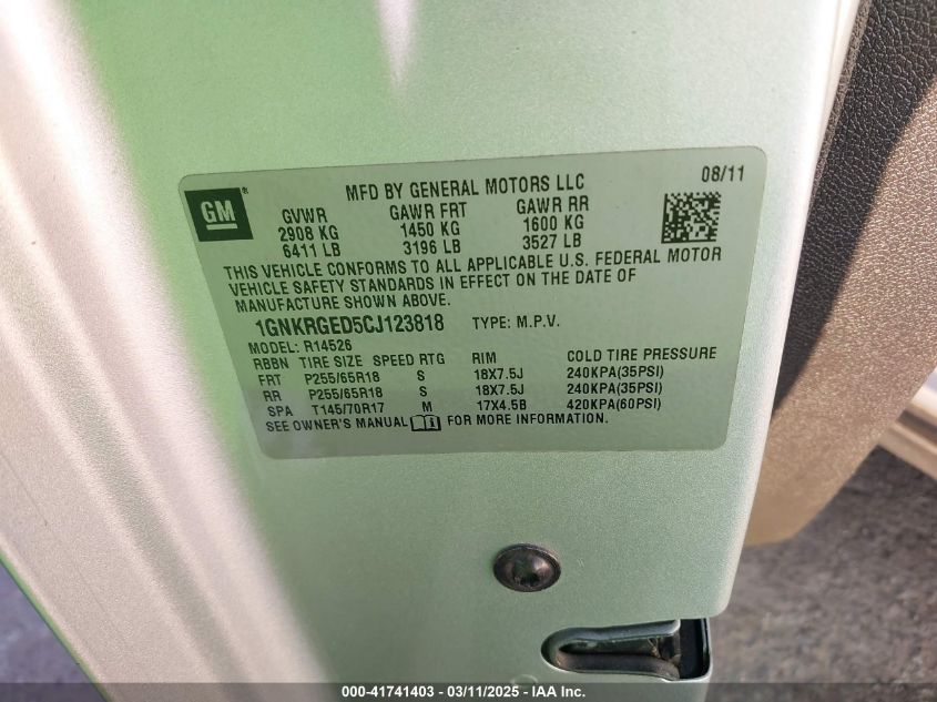 Цвет СеребряныйЦилиндры 6Привод Передний приводVIN 1GNKRGED5CJ******Состояние НеизвестноПовреждения Передняя или задняя AutoRIA
