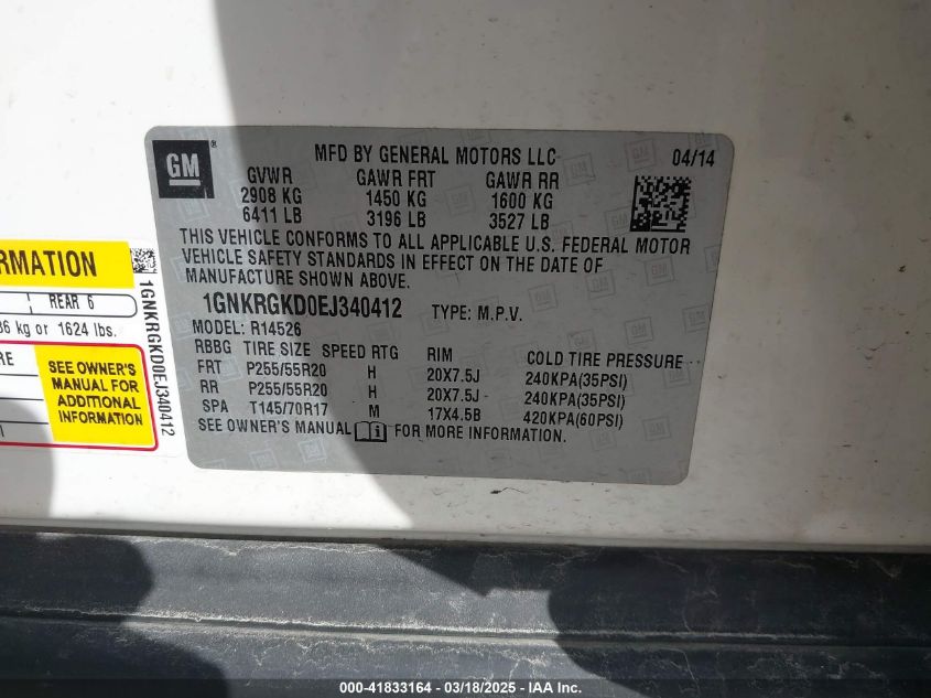 Цвет БелыйЦилиндры 6Привод Передний приводVIN 1GNKRGKD0EJ******Состояние НеизвестноПовреждения Передняя или задняя AutoRIA