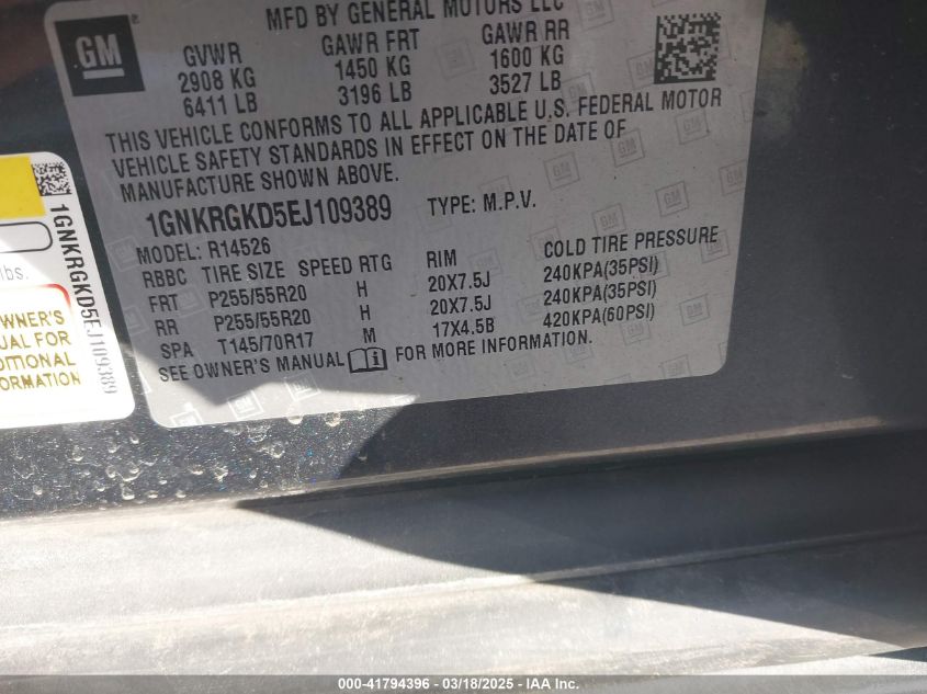 Цвет СерыйЦилиндры 6Привод Передний приводVIN 1GNKRGKD5EJ******Состояние НеизвестноПовреждения Передняя левая AutoRIA