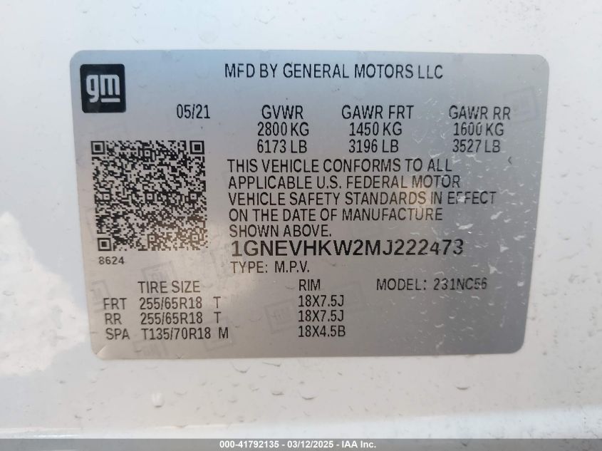 Цвет БелыйЦилиндры 6Привод Полный приводVIN 1GNEVHKW2MJ******Состояние НеизвестноПовреждения Передняя или задняя AutoRIA