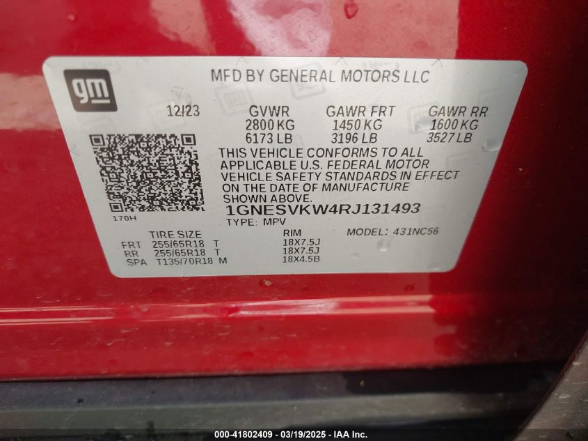 Цвет КрасныйЦилиндры 6Привод Передний приводVIN 1GNESVKW4RJ******Состояние НеизвестноПовреждения Передняя и задняя