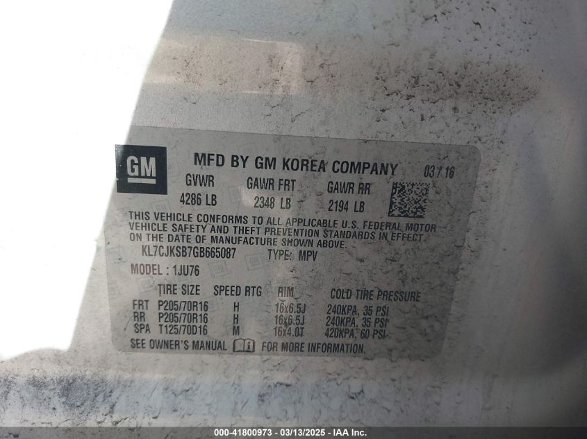 Цвет СерыйЦилиндры 4Привод Передний приводVIN KL7CJKSB7GB******Состояние НеизвестноПовреждения Передняя или задняяДата аукциона 2025-03-25 AutoRIA