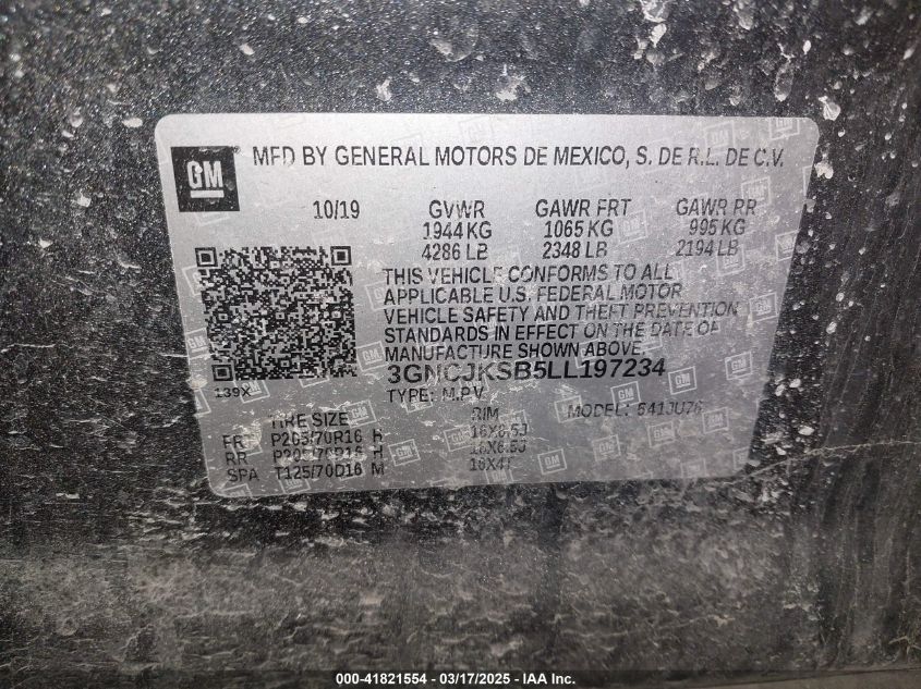2020 CHEVROLET TRAX 2020 року Бензин, 1.4, Передний привод, vin - 3GNCJKSB5LL****** из США
