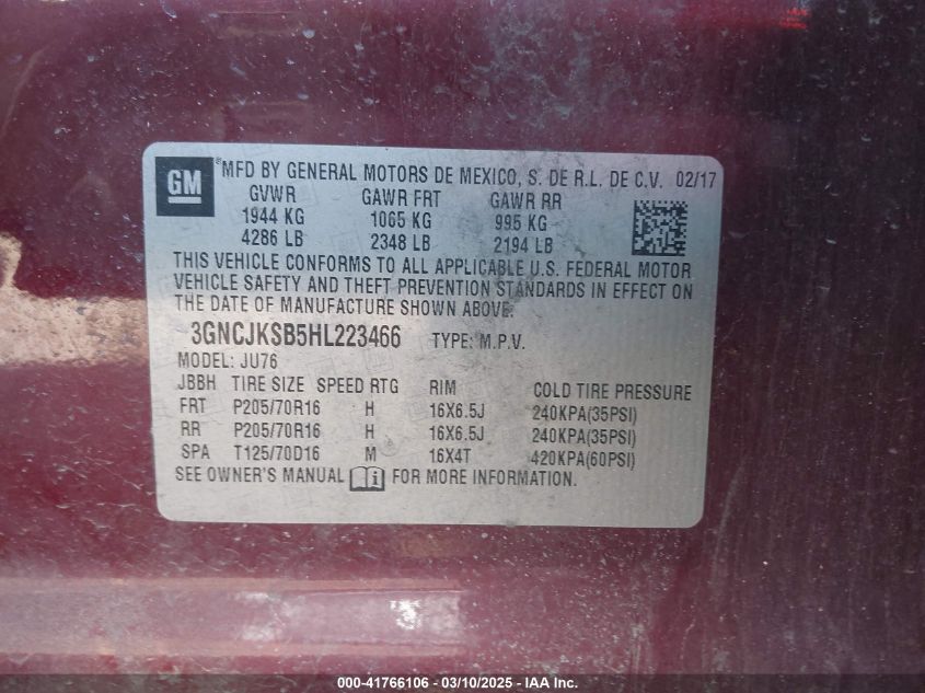 2017 CHEVROLET TRAX 2017 року Бензин, 1.4, Передний привод, vin - 3GNCJKSB5HL****** из США