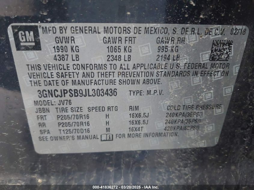 2018 CHEVROLET TRAX 2018 року Бензин, 1.4, Полный привод, vin - 3GNCJPSB9JL****** из США