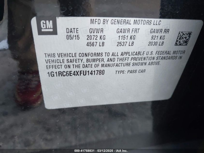 2015 CHEVROLET VOLT 2015 року Гибрид, 1.4, Передний привод, vin - 1G1RC6E4XFU****** из США