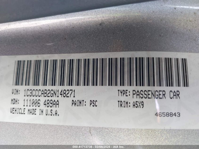 Цвет СеребряныйЦилиндры 4Привод Передний приводVIN 1C3CCCAB2GN******Состояние НеизвестноПовреждения Передняя или задняя AutoRIA