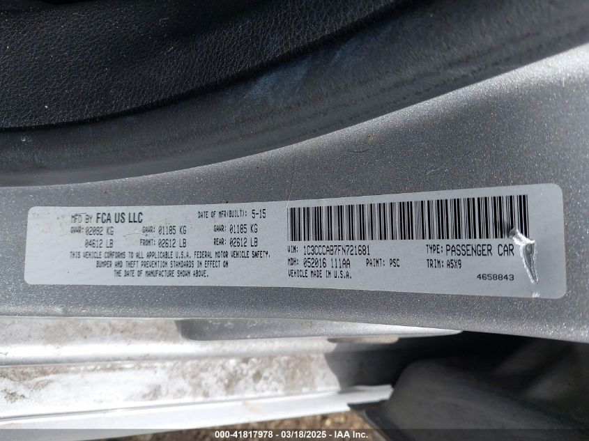 2015 CHRYSLER 200 2015 року Бензин, 2.4, Передний привод, vin - 1C3CCCAB7FN****** из США
