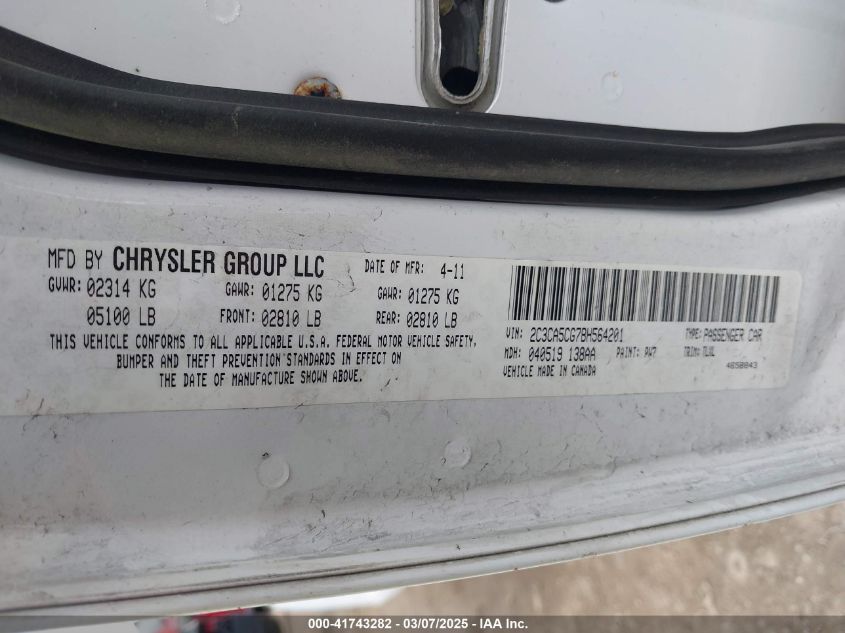 Цвет БелыйЦилиндры 6Привод Задний приводVIN 2C3CA5CG7BH******Состояние НеизвестноПовреждения Передняя или задняя