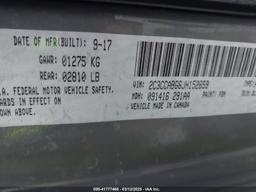 Цвет СерыйЦилиндры 6Привод Задний приводVIN 2C3CCABG6JH******Состояние НеизвестноПовреждения Передняя или задняя AutoRIA