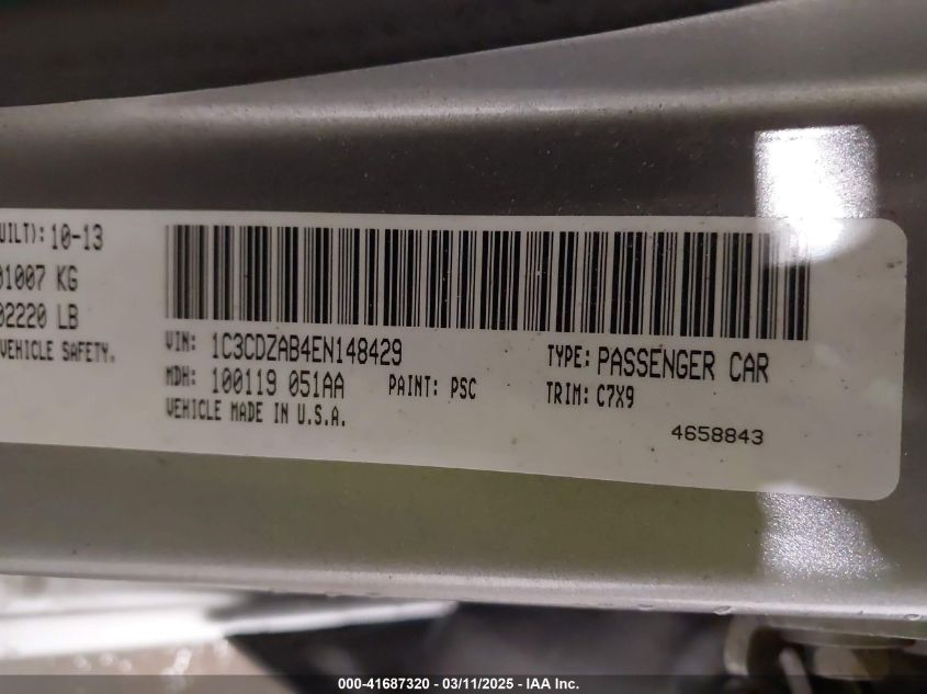 Цвет СеребряныйЦилиндры 4Привод Передний приводVIN 1C3CDZAB4EN******Состояние НеизвестноПовреждения Передняя и задняя AutoRIA