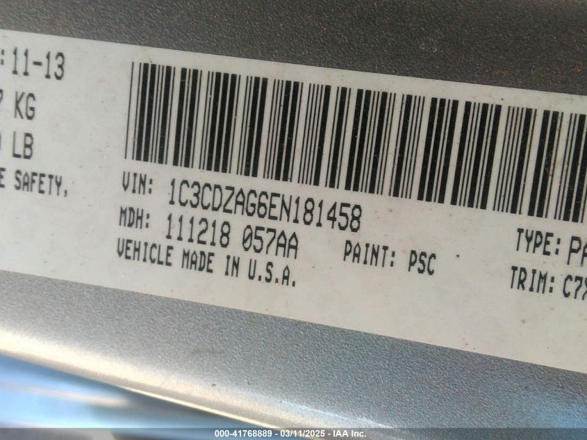 Цвет СеребряныйЦилиндры 6Привод Передний приводVIN 1C3CDZAG6EN******Состояние НеизвестноПовреждения Передняя или задняя AutoRIA