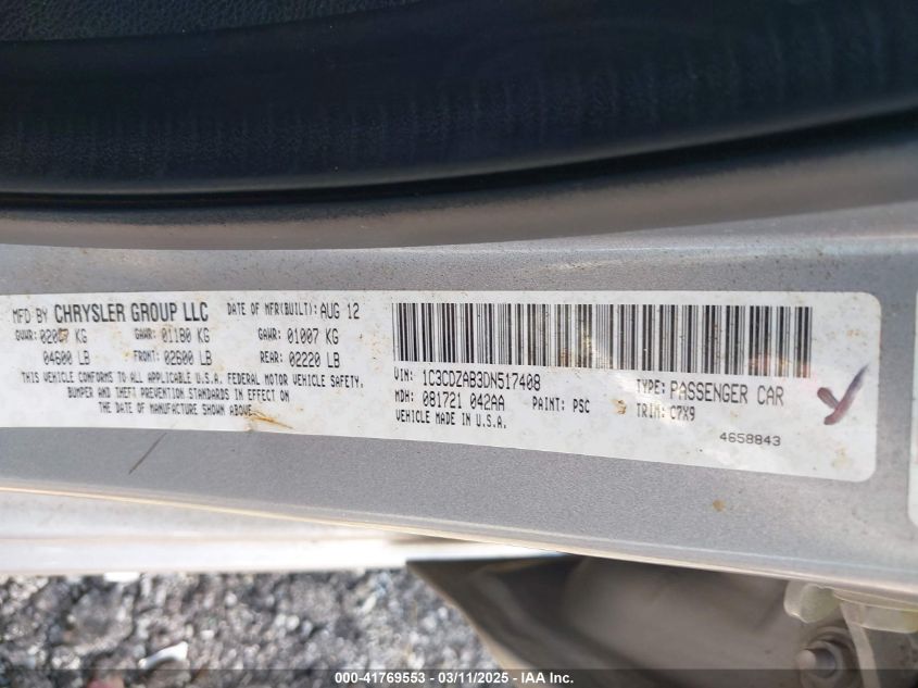 Цвет СеребряныйЦилиндры 4Привод Передний приводVIN 1C3CDZAB3DN******Состояние НеизвестноПовреждения Передняя или задняя AutoRIA