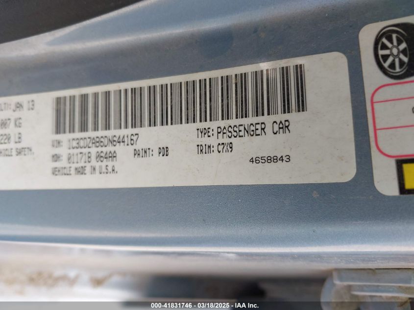 Цвет СинийЦилиндры 4Привод Передний приводVIN 1C3CDZAB6DN******Состояние НеизвестноПовреждения Передняя или задняя AutoRIA
