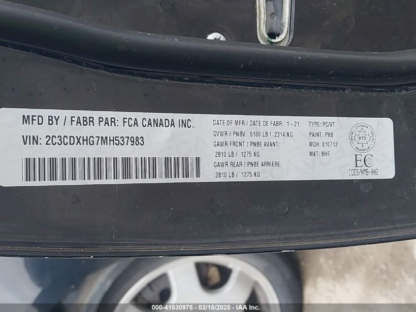 2021 DODGE CHARGER 2021 року Бензин, 3.6, Задний привод, vin - 2C3CDXHG7MH****** из США