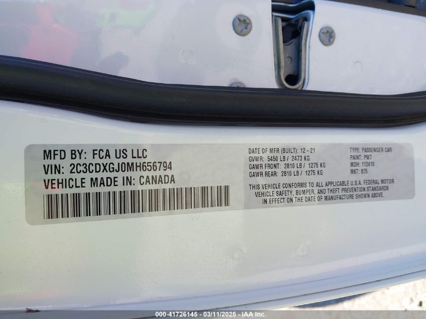 2021 DODGE CHARGER 2021 року Бензин, 6.4, Задний привод, vin - 2C3CDXGJ0MH****** из США