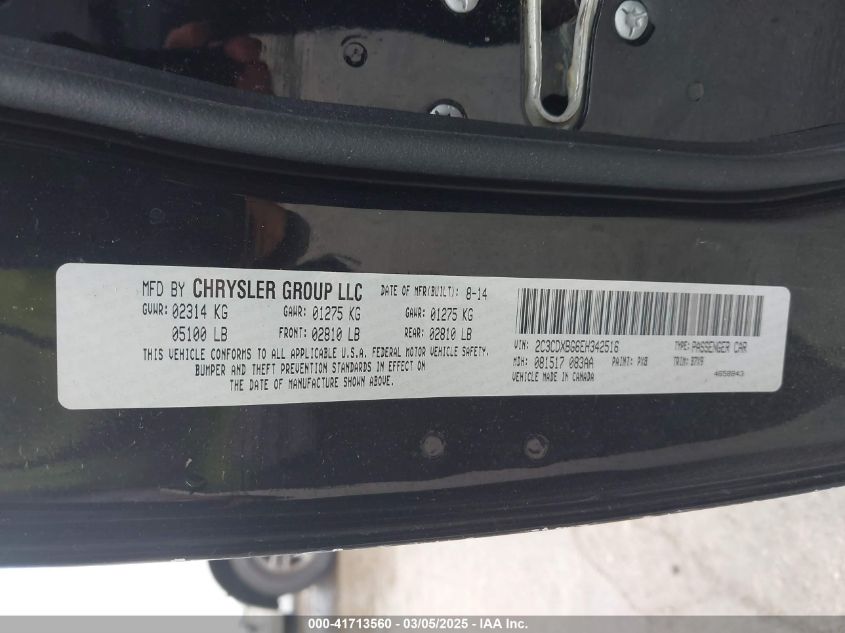 Цвет ЧерныйЦилиндры 6Привод Задний приводVIN 2C3CDXBG6EH******Состояние НеизвестноПовреждения Передняя или задняя AutoRIA