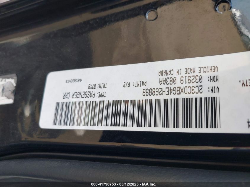 Цвет ЧерныйЦилиндры 6Привод Задний приводVIN 2C3CDXBG4EH******Состояние НеизвестноПовреждения Передняя леваяДата аукциона 2025-03-20 AutoRIA