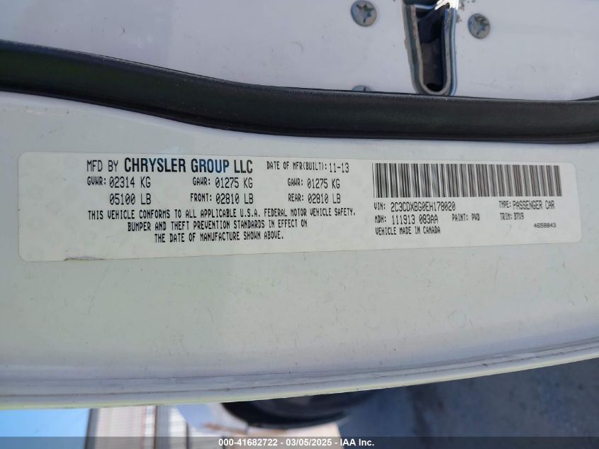Цвет БелыйЦилиндры 6Привод Задний приводVIN 2C3CDXBG0EH******Состояние НеизвестноПовреждения Передняя или задняя AutoRIA