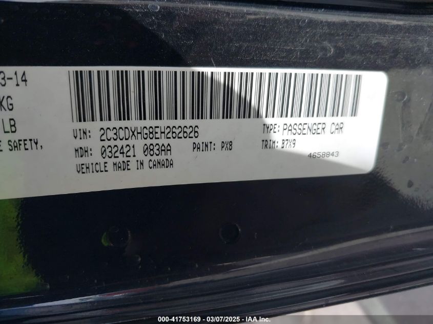Цвет ЧерныйЦилиндры 6Привод Задний приводVIN 2C3CDXHG8EH******Состояние НеизвестноПовреждения Передняя или задняяДата аукциона 2025-03-21 AutoRIA