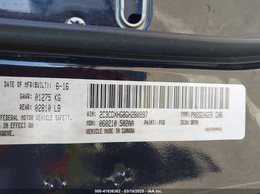 2016 DODGE CHARGER 2016 року Бензин, 3.6, Задний привод, vin - 2C3CDXHG8GH****** из США