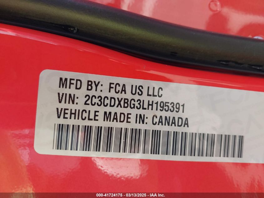2020 DODGE CHARGER 2020 року Бензин, 3.6, Задний привод, vin - 2C3CDXBG3LH****** из США